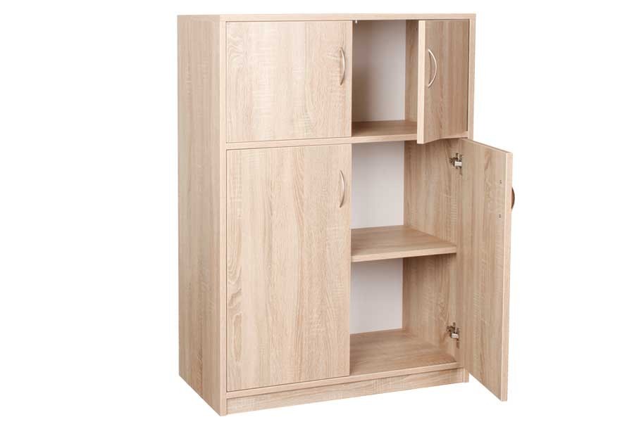 Skříňka dvířková kombinovaná C526 pro vkusné zařízení kanceláře nebo obývacího pokoje materiál lamino 1,8cm olepeno ABS hranou 0,2cm v dřevodezénu dvířka jsou opatřena kvalitními závěsnými panty s tlumením na zacvaknutí skříňka obsahuje v dolní části jednu polici český výrobek dodáváno v demontu Rozměry výška: 115cm délka: 80cm hloubka: 40cm Hmotnost: 38 kg