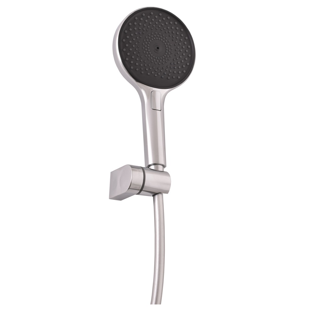 Sprchový komplet s otočným držákem obsahuje: plastová antivápenná sprcha PS0019 - 3+1 polohy ø 140 mm povrchová úprava chrom 3 polohová + 1 funkce oplach ruční sprcha má funkci EasyClean – jednoduché čištění drobných trysek sprchy (vznikající vodní kámen lze pouhým jemným dotykem z povrchu trysek jednoduše setřít) Tato ruční sprcha je výjimečná tlakovou tryskou pro oplach sprchového koutu. sprchová plastová hadice PH1505 - délka 150 cm plastový otočný držák ruční sprchy PD0212