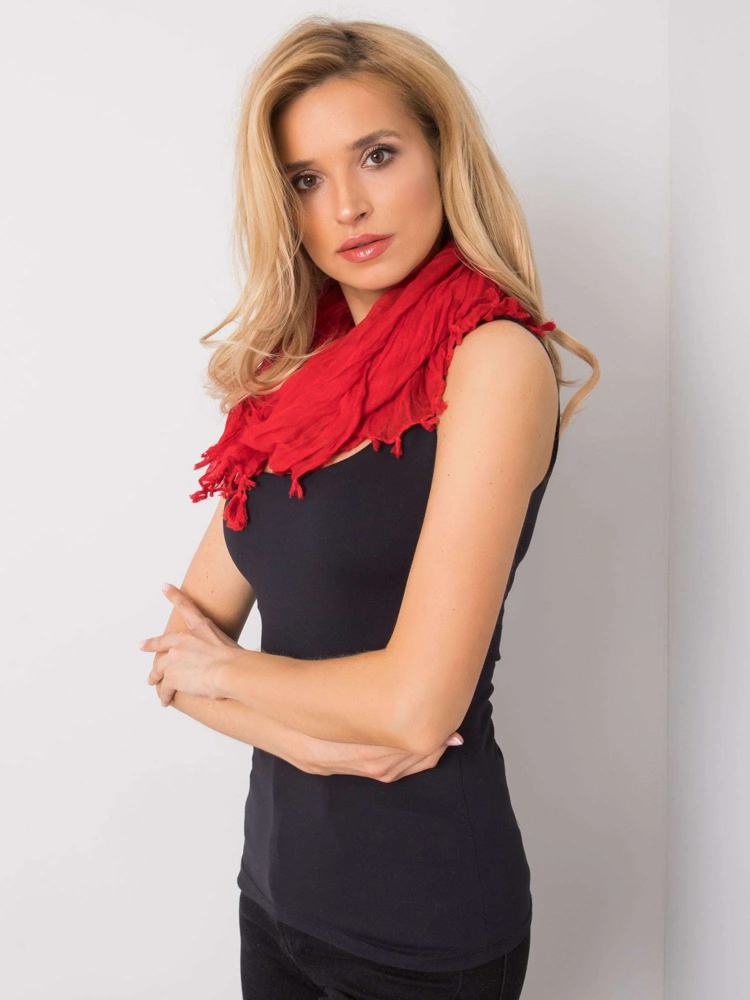 Červená dámská šála se střapci. materiálové složení: 100% viskóza způsob praní: praní v pračce na 30 °C rozměry: přibližně 110 x 110 cm