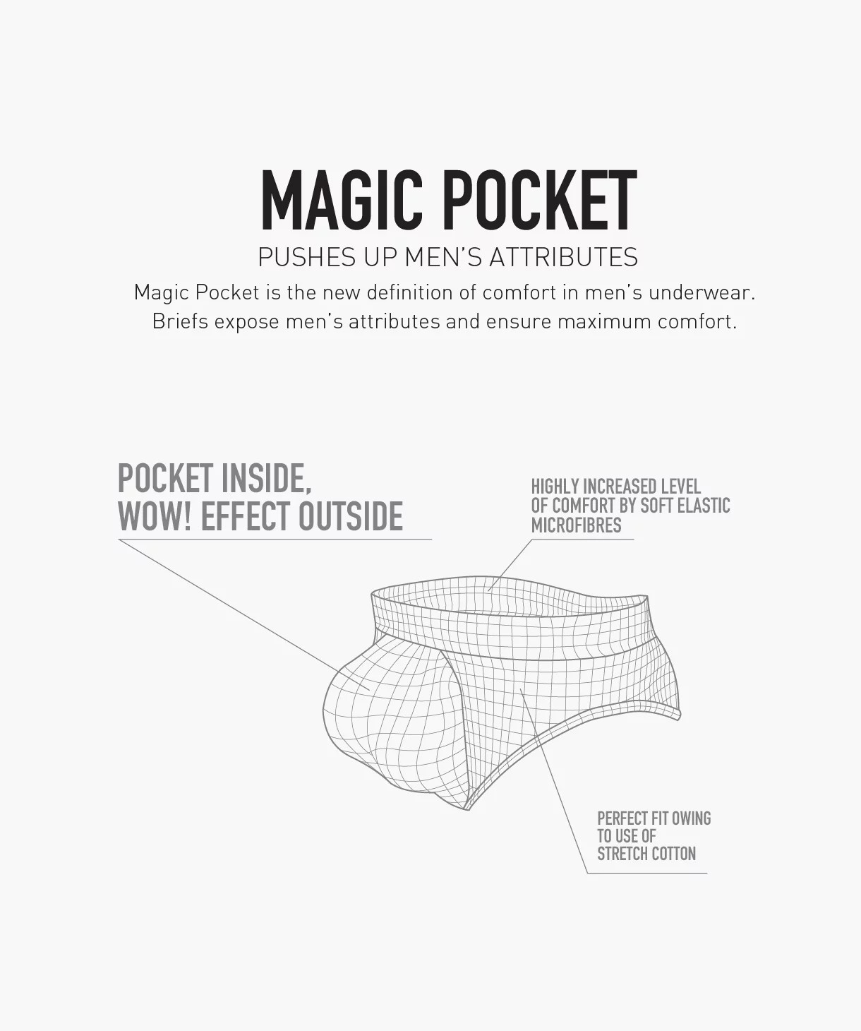 Slipy męskie Magic Pocket, Kolekcja Sexy - Bielizna męskaPoznaj slipy męskie Magic Pocket w nowym wydaniu. Majtki o sportowym charakterze odznaczają się średniej szerokości bokami oraz niską talią, wykończoną szeroką gumą zewnętrzną z napisami Atlantic Up MAGIC. Slipy mają profilujące szwy i koszyk, gdzie mieści się Magic Pocket (magiczna kieszonka), która odpowiada za uniesienie i powiększenie przyrodzenia. Majtki wykonane są z dzianiny cotton stretch, która jest połączeniem przyjemnej w dotyku bawełny i rozciągliwego elastanu. Dzianina jest przyjazna dla skóry, przepuszczająca powietrze i zapobiegająca nadmiernemu poceniu się ciała. Swoje właściwości zachowuje przez długi czas użytkowania. Spodziewaj się wyjątkowych doznań, perfekcyjnego dopasowania do sylwetki i najwyższego poziomu komfortu. CZARNY95% bawełna, 5% elastan