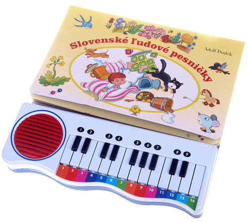 Klavírik s kúzelnými ilustráciami Adolfa Dudka naučí hrať a spievať malých hudobných nadšencov 12 najznámejších ľudových pesničiek. Miesto tradičného notového zápisu sú farebné noty s číslicami vyvedené v rovnakých farbách ako klávesy na elektronickom klavíriku. A práve vďaka tomu umožňujú deťom jednoduchú orientáciu v notách a ľahké hranie obľúbených pesničiek ako Skákal pes, Pec nám spadla, Holka modrooká alebo Prší, prší.