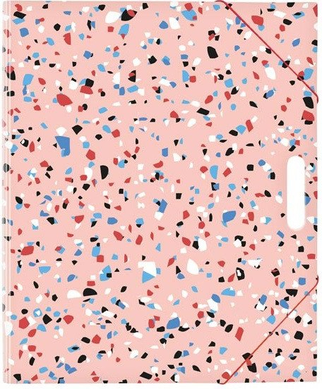 Složka na výkresy v růžové barvě s motivem imitující broušenou dlažbu s jemnými kamínky (terrazzo). Je vyrobená z kvalitního lepenkového kartonu, potaženého laminem. Uvnitř složky jsou růžky pro uchycení výkresů A4. Složka je opatřená gumičkou pro pevné uzavření a průhmatem pro snadné přenášení. Výkresy tak zůstanou neporušeny. Formát: A4 Barva: růžová Motiv: terrazzo Materiál: lepenkový karton s laminem