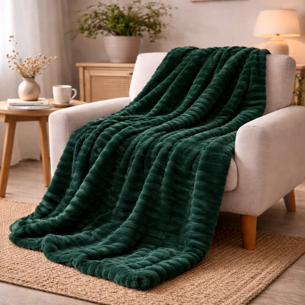 Smaragdově zelená plyšová deka s reliéfním pruhem Šířka: 200 cm | Délka: 220 cm