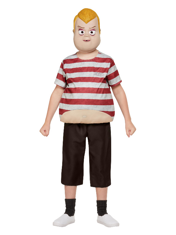 Kostým obsahuje pruhované tričko, černé kraťasy a masku, díky kterým se vaše dítě okamžitě promění v Pugsleyho – oblíbeného rošťáka z kultovní rodiny. Stačí přidat trochu strašidelného chování a úspěch na každé párty je zaručen!