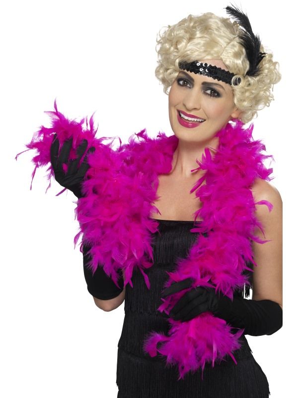 Dodejte svému kostýmu luxusní nádech s tímto nádherným péřovým boa, které je perfektním doplňkem k charlestonovým šatům, tematickým párty ve stylu prohibice nebo retro večírkům.