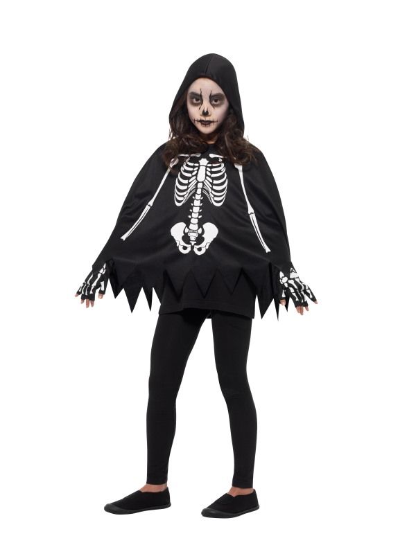 Dětský kostým - Kostlivec. Součástí je plášť s kapucí a rukavice. UNI