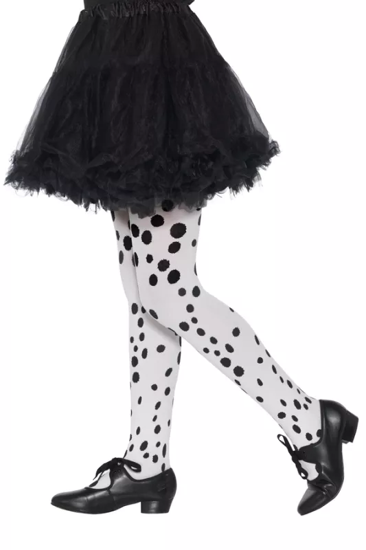 Dětské punčocháče - bílé s černými tečkami dalmatin.