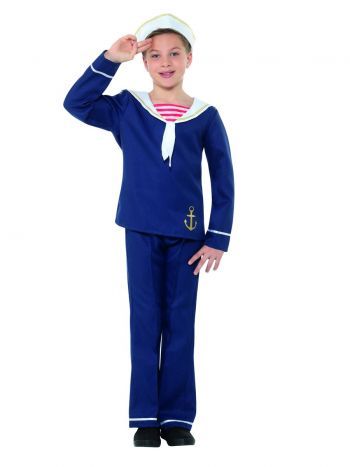 Tento dětský kostým námořníka promění každé dítě ve statečného mořského průzkumníka! Stylový bílo-modrý top, odpovídající kalhoty a autentická námořnická čepice dokonale podtrhnou téma. Ideální na karnevaly, tematické večírky nebo dětské hry.