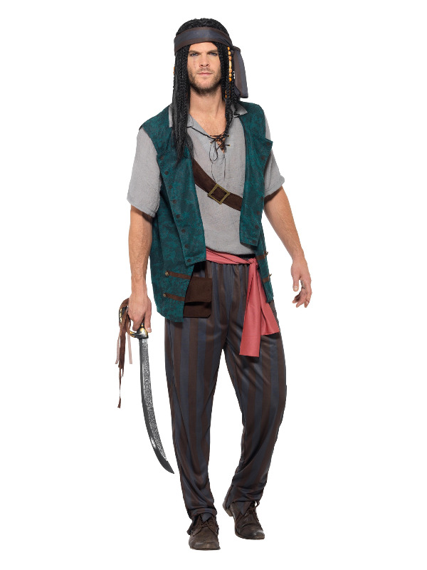Ahoj, dobrodruhu! Připrav se na plavbu po moři smíchu a karnevalového šílenství s naším kostýmem – Pirát zelený. Stylová zelená košile, pohodlné kalhoty, vesta s páskem a samozřejmě šátek, bez kterého žádný správný pirát nevyráží na lov pokladů.