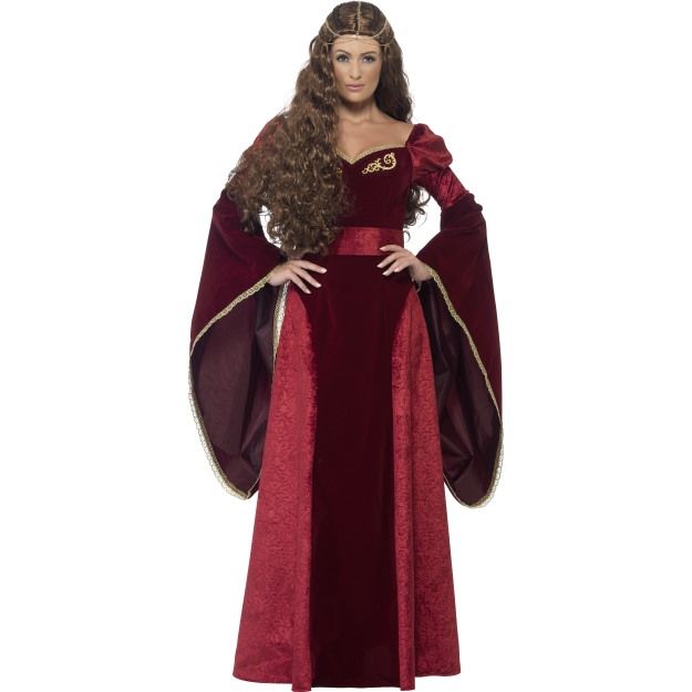 Vstupte do světa rytířů a královských dvorů s tímto nádherným kostýmem středověké královny v rubínové barvě. Dlouhé splývavé šaty s bohatými detaily vám dodají urozený vzhled a zajistí obdiv na každé historické akci. Skvělá volba pro tematické večírky, karnevaly nebo divadelní představení. Doplňte svůj outfit o korunu, rukavičky a elegantní šperky pro dokonalý efekt!
