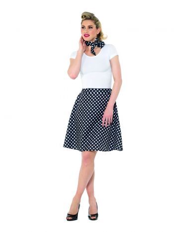 Tento set obsahuje ikonickou puntíkatou sukni a ladící šátek, díky kterým zazáříte na jakékoliv tematické party, firemním večírku nebo narozeninové oslavě.