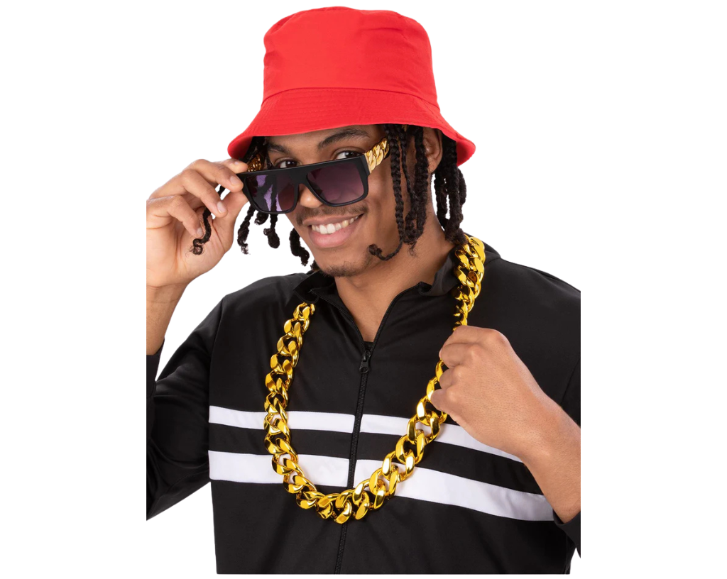 Dolaďte svůj devadesátkový outfit touto stylovou sadou retro 90. léta – klobouk, brýle a náhrdelník.!