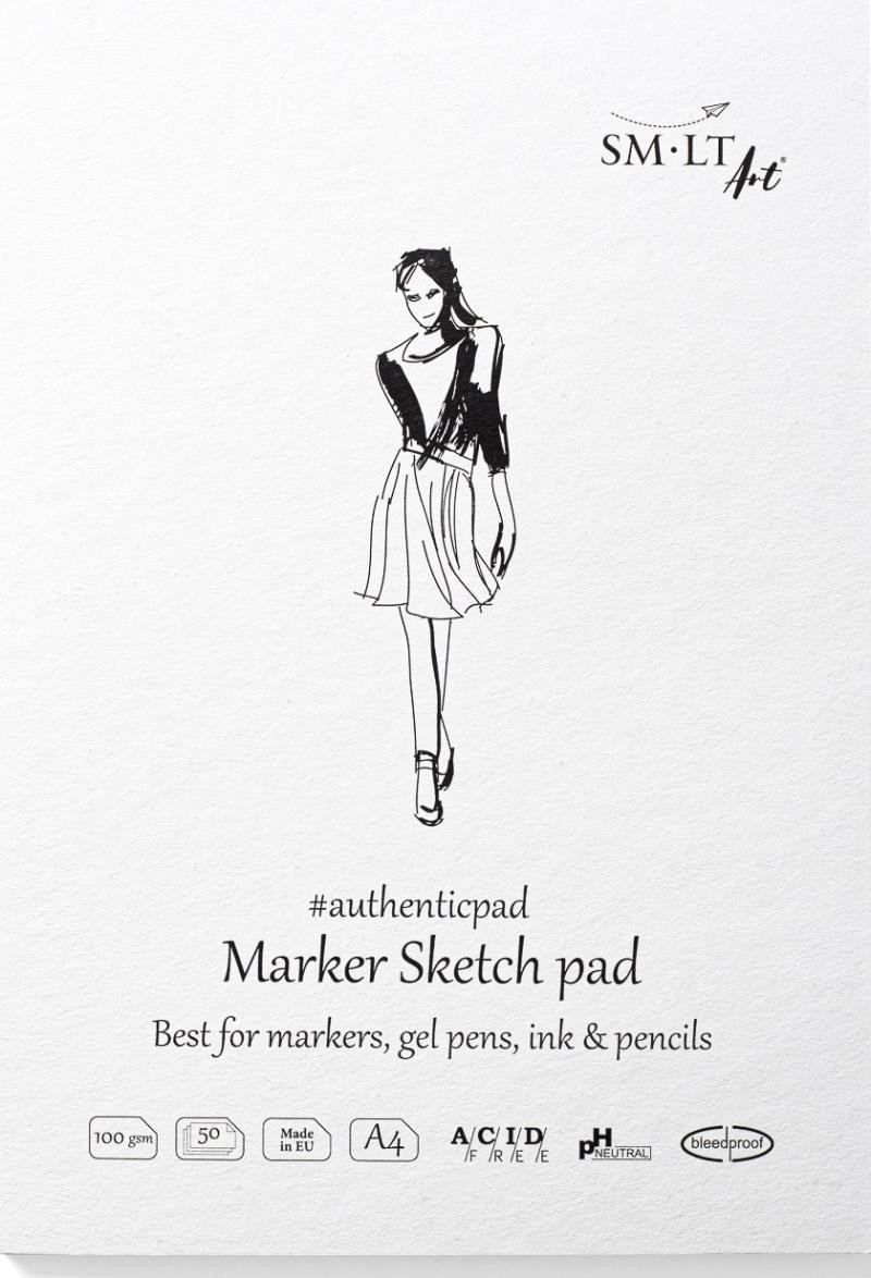 S hladkým bílým papírem. Jedna strana papíru je lakovaná, proto je papír nepropustný, 100g/m2. Nejvhodnější pro fixy a gelová pera. Lze použít pouze jednu stranu papíru. Vnitřní papír neobsahuje kyseliny, má neutrální pH, je odolný proti prosakování a má certifikaci FSC. S obalem z přírodního barevného kartonu a tvrdým hřbetem. Lepeno na delší straně.