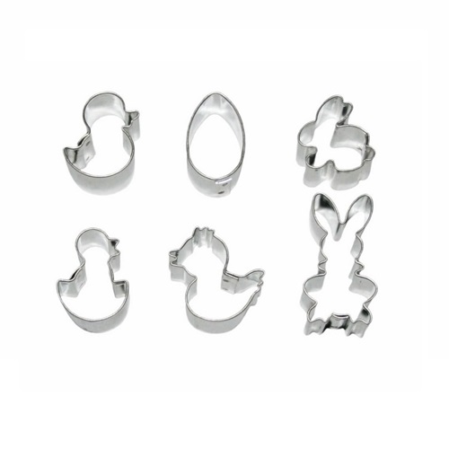 Vykrajovačka MIKRO mix. Sada obsahuje 6 ks velikonočních motivů. Velikost vykrajovátek: 20 - 30 mm. Výška pásku 16 mm. Materiál: pocínovaný plech. Vykrajovátko je vhodné na perníčky, cukroví. Upozornění: vykrajovátka nejsou vhodná do myčky na nádobí!