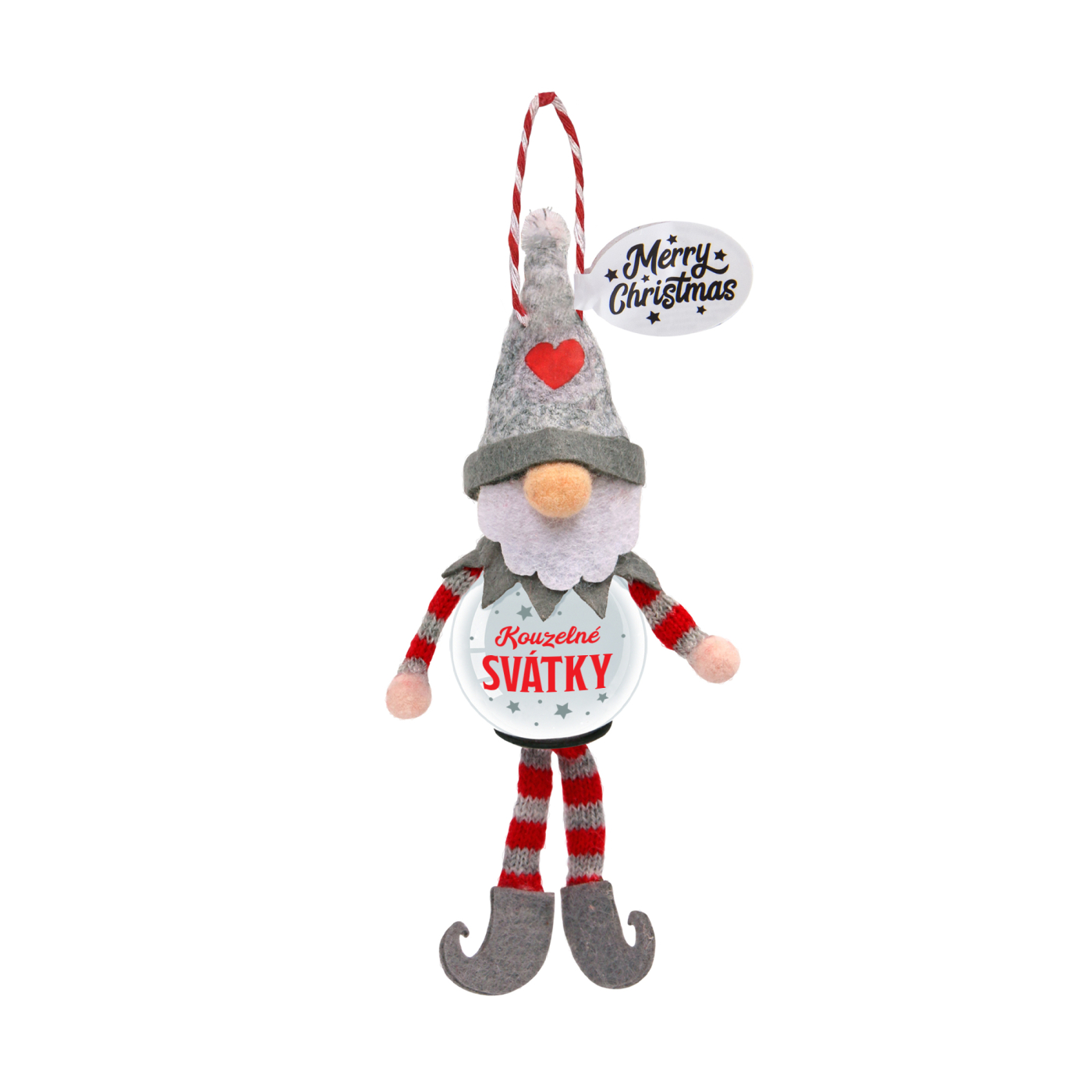Tyto vánoční ozdoby v designu skřítka nebo Santa Klause mají místo bříška malé sněžítko s věnováním. Rozměry: 5 × 11 cm (16 cm vč. poutka) Materiál figurek: netkaná textílie, polyesterový úplet Materiál sněžítka: PET (uvnitř: čistá voda, konzervační prostředek proti mrazu)