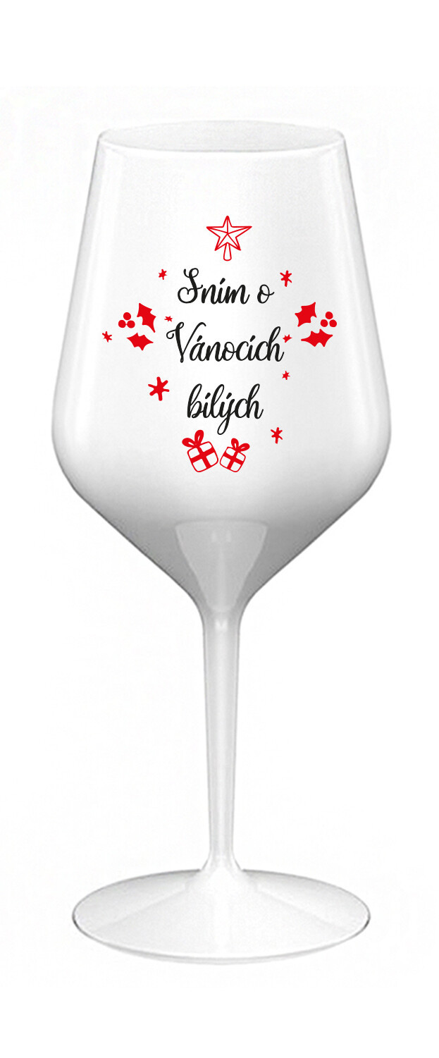 Nerozbitná bílá vinná sklenice s motivem SNÍM O VÁNOCÍCH BÍLÝCH je skvělá na zahradu, pláž, výlet, piknik a parádu udělá i při kempování. Jelikož je vyrobená z kvalitního polykarbonátu je de facto nerozbitná. Je to luxusní kousek, s nímž si víno můžete vychutnat prostě kdekoliv. Mají ergonomický tvar, který příjemně padne do ruky a protože je lehká, usnadňuje to její přenášení. Je snadno skladovatelná a lehce se čistí. Díky svému designu si s ní můžete vychutnat doopravdy kdekoliv bezproblémové pití výborného vína.
