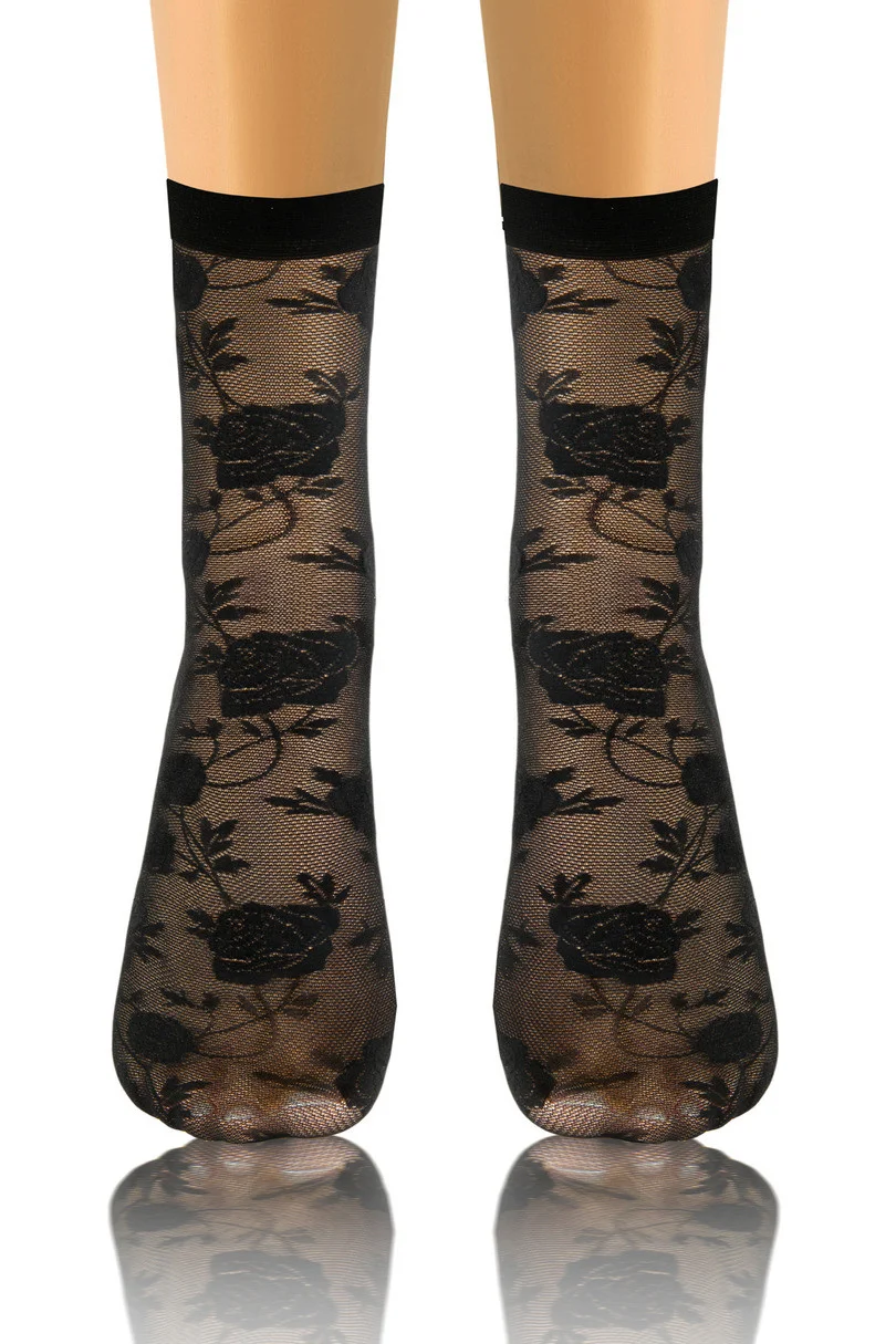 Přidejte svému outfitu romantický nádech s elegantními ponožkami WZ 10 od značky Sesto Senso. Jsou vyrobeny z průhledné síťoviny, zdobené bohatým květinovým vzorem v róg, působí mimořádně žensky a nápadně. Černá povrchová úprava v podobě hladkého lemu zajišťuje stabilitu a pohodlí při nošení, zatímco díky vysokému obsahu polyamidu jsou ponožky odolné a dokonale přiléhají k noze. Jsou ideální volbou pro každodenní nošení, do práce i pro zvláštní příležitosti.  .