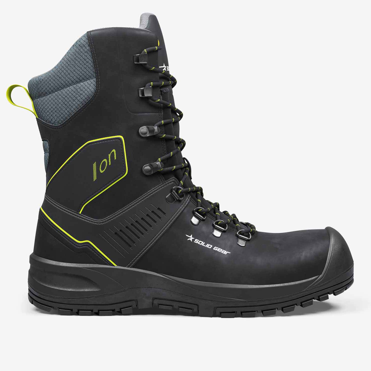 Svršek má z jakostní LWG kůže, podšití ze syntetické kožešiny výborně izoluje a současně odvádí vlhkost od chodidel, protiskluzná gumová podešev zajišťuje stabilní chůzi a o maximálně pohodlnou chůzi se postará mezipodešev z měkké PU pěny a stélka z polyuretanové pěny s otevřenými buňkami. Zapínání je řešené pro zimní podmínky, tedy jednoduše a prakticky: na tkaničky v kombinaci se zipem YKK™. Ochranné prvky tvoří sklolaminátová tužinka a měkká vložka proti propíchnutí. Celkovou ochranu vyjadřuje norma EN ISO 20345:2022 S3L, SR, HRO, FO, CI. Boty Ion mají také ochranu proti elektrostatickému výboji v souladu s normou EN IEC 61340-5-1:2016.