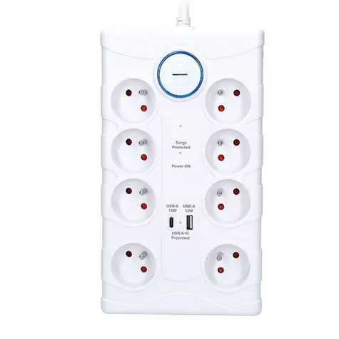 Solight PO80 přepěťová ochrana bílá / 370J / 8 zásuvek / 2m