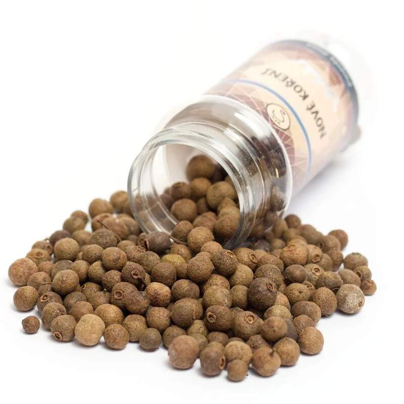 Velké kuličky nového koření s teplým aroma do omáček, vývarů nebo rýže. Tradiční použití nového koření 1. Vývary a polévky Nové koření je základní složkou mnoha vývarů a polévek, zejména v německé, české, polské a skandinávské kuchyni. Celé kuličky se přidávají do hovězích, kuřecích i zeleninových vývarů, kde přispívají k bohaté a komplexní chuti. 2. Omáčky V evropské kuchyni je nové koření důležitou součástí tmavých a silných omáček, například: Svíčková omáčka – v klasice české kuchyně se nové koření kombinuje s bobkovým listem, tymiánem, pepřem a kořenovou zeleninou. Rajská omáčka – nové koření dodává hloubku chuti a sladkou kořeněnou vůni. Skandinávské omáčky k masům – ve Švédsku a Dánsku se nové koření používá v omáčkách k zvěřině a hovězímu masu. 3. Guláše a dušená masa Maďarský guláš, český hovězí guláš či polský bigos často obsahují nové koření pro zesílení chuti masa a omáčky. Koření se obvykle přidává v celých kuličkách a před podáváním se odstraňuje. 4. Rýže a přílohy Nové koření se tradičně používá i při vaření rýže, zejména v balkánské a východoevropské kuchyni. Přidáním několika kuliček do vody při vaření rýže se docílí jemně kořeněné chuti.