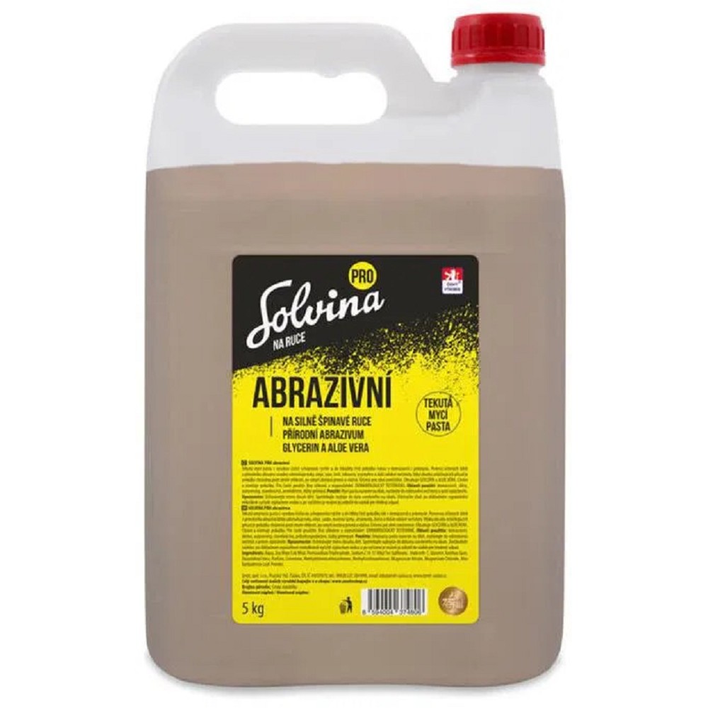 SOLVINA Pro abrazivní 5 l na ruce Mycí pasta na ruce - tekutá, s vysokou čisticí schopností, čištění pokožky rukou do hloubky, vhodná do domácnosti i průmyslu, snadné odstranění tuků, olejů, sazí... Zvláčňující přísady, pokožka chráněna proti ztrátě vlhkosti, po umytí jemná a vláčná pokožka. Určena pro silné znečištění, obsah GLYCERINU a ALOE VERA, ochrana a ošetření pokožky. Pro časté použití, bez silikonů a rozpouštědel. DERMATOLOGICKY TESTOVÁNO