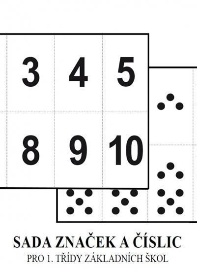 Soubor značek a číslic pro 1. ročník základních škol.•rozlišování počtu teček od 1 do 10•rozlišování číslic•přiřazování čísla k počtu teček a naopak•uspořádání čísel vzestupně i sestupně•určování čísla hned před a hned za daným číslem•sestavování příkladů na sčítání a odčítání•přikládání k obrázkům na stránkách učebnice M1•využívání k činnostem, ke kterým je připravená zadní strana M1, 1. díl NOVA119