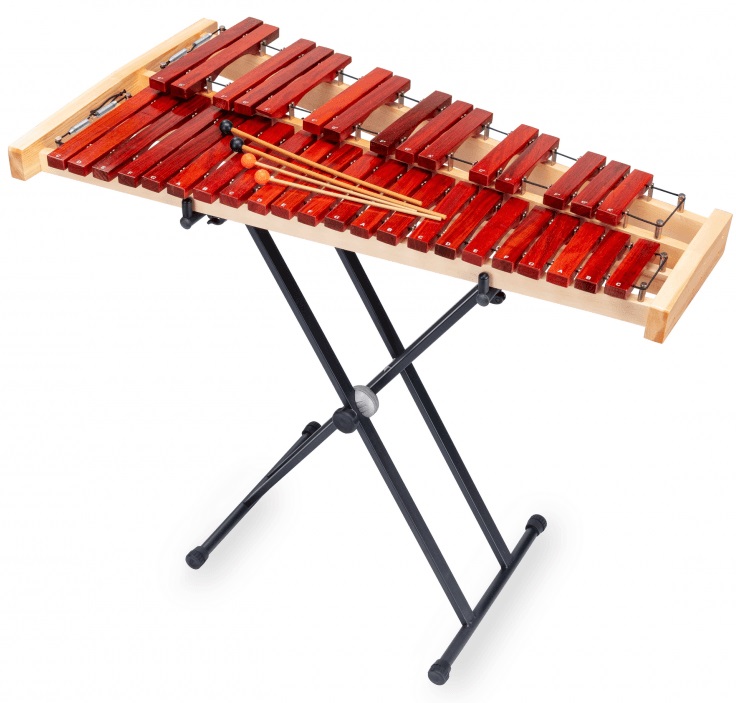 Xylofon Soundsation SX-37SB je kvalitní xylofon s 37 klávesami. Ty jsou vyrobené palisandrového dřeva a poskytují čistý, přesně naladěný tón v rozsahu 3 oktáv (C-C) včetně půltónů. Rám z borovice zajišťuje pevnost a stabilitu nástroje, díky čemuž je vhodný jak pro začátečníky, tak pro pokročilé hráče. Součástí balení je skládací stojan ve tvaru X, dvě sady paliček a praktická taška, která umožňuje snadné přenášení nástroje kamkoli potřebujete. Tento kompletní set je ideální volbou pro všechny, kdo hledají k