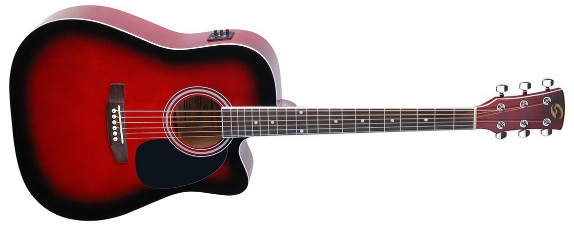 Elektroakustická kytara Akustické kytary značky Soundsation s označením Yellowstone vycházejí z tradičního westernového tvaru Dreadnought. Představují dobrou volbu prvního nástroje pro úplné začátečníky, ale i příhodného společníka na příjemně strávený letní večer s přáteli. Přední deska elektroakustické kytary YELLOWSTONE-DNCE-RDS je zhotovena z překližovaného smrku, zadní deska a luby jsou vyrobeny z překližované lípy. Hmatník z blackwoodu je osazen dvaceti pražci, orientaci na hmatníku usnadňují poziční