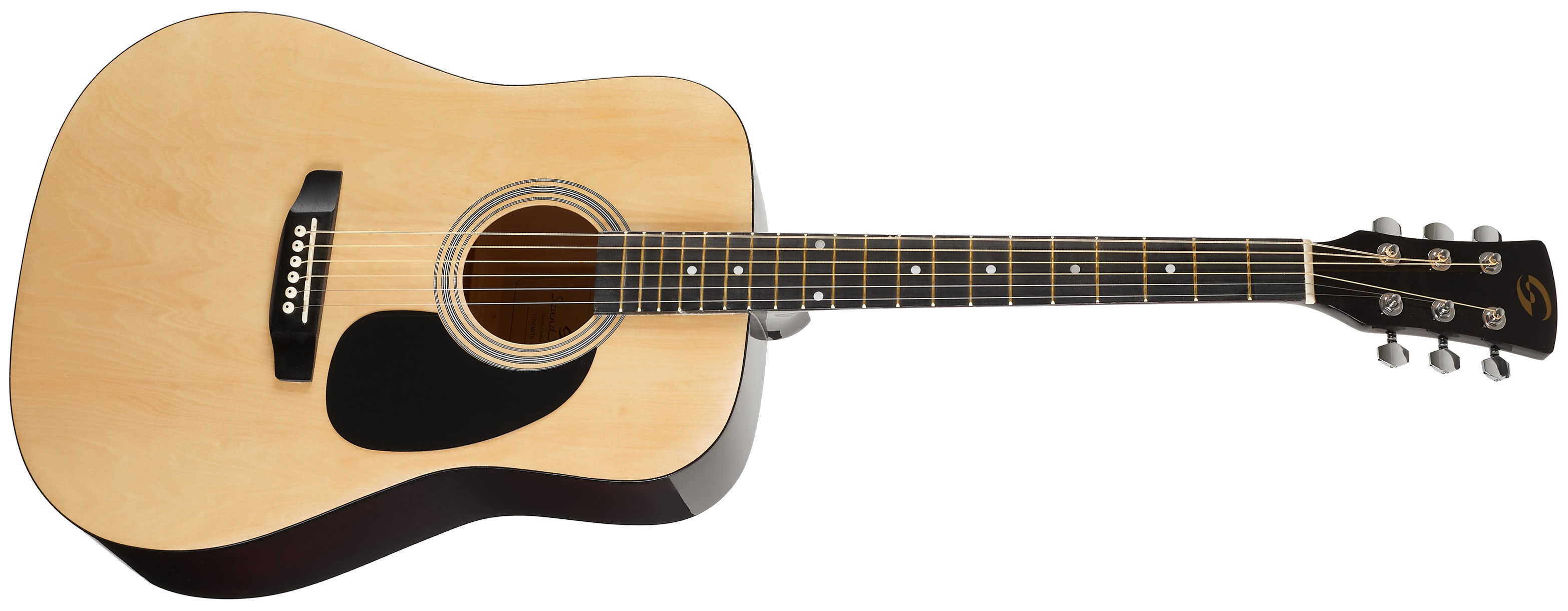 Akustická kytara Akustické kytary značky Soundsation s označením Yosemite vycházejí z tradičního westernového tvaru Dreadnought. Představují dobrou volbu prvního nástroje pro úplné začátečníky, ale i příhodného společníka na příjemně strávený letní večer s přáteli pro zručné kytaristy, kteří tak své cenné modely mohou ponechat doma v kufru. Vrstvený korpus tohoto nástroje je zhotoven z překližované lípy. Plochu javorového hmatníku rozděluje dvacet pražců a poziční tečky, které začátečníkům především usnadní