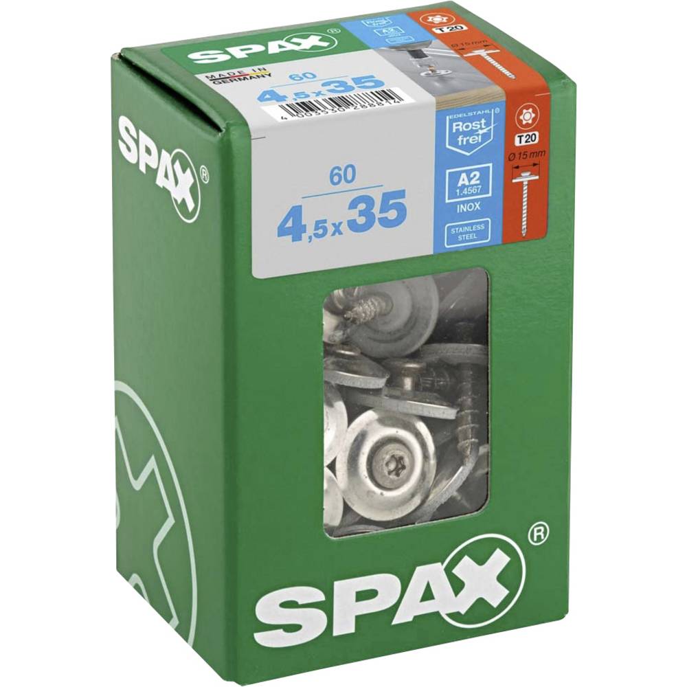 SPAX 4577000450357 Klempířský šroub 4.5 mm 35 mm T-STAR plus nerezová ocel A2 60 ks