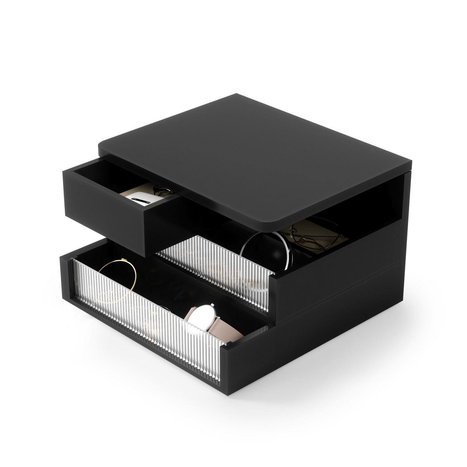 - 3 patra s prostornými přihrádkami pro přehlednou organizaci šperků