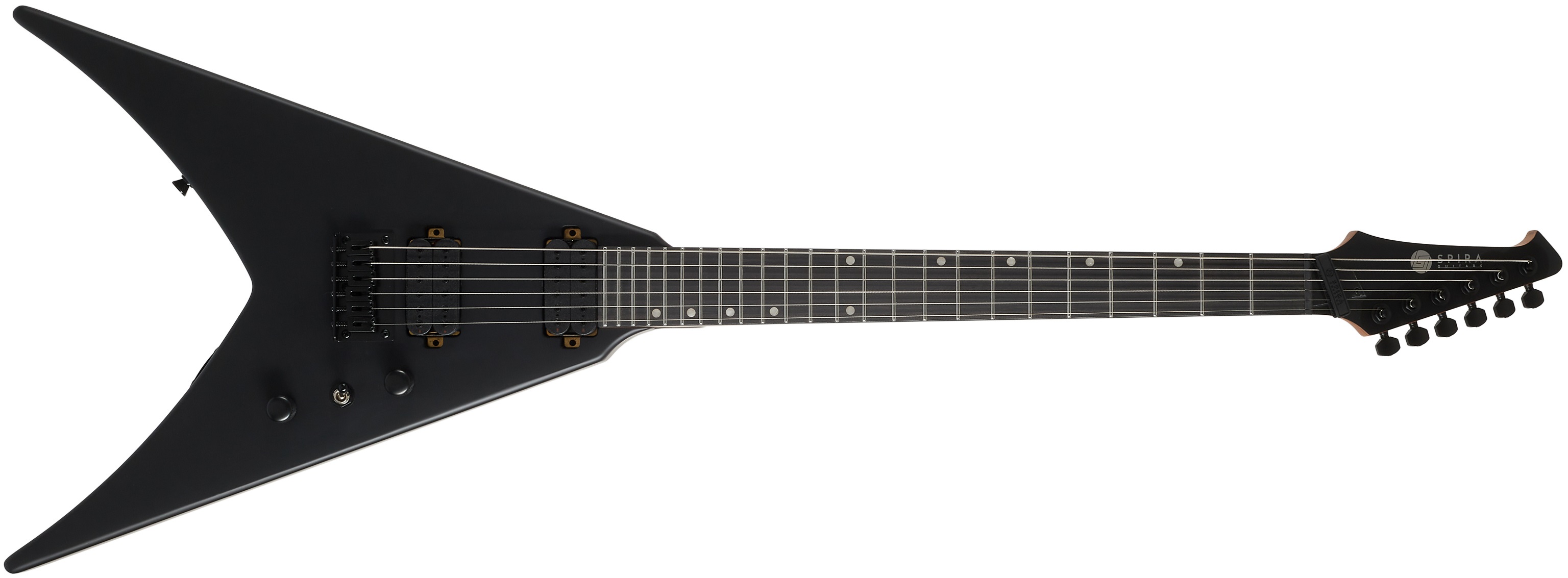 Elektrická kytara Značka Spira Guitars nabízí cenově dostupné elektrické kytary v moderním designu osazené silnými snímači určené hráčům hard a heavy stylů. Jedná se o projekt lidí z tábora Jet Guitars, tj. značky známé výrobou “budget” kytar v tradičních designech. V případě kytar Spira Guitars se počítá jenom šťavnaté high-gain zkreslení a “full chug”. Elektrická kytara V-400 MBK je klasické “véčko”, tj. vychází z tvaru modelů Flying V. Nabízí tělo zhotovené z “pečeného” topolu (roasted poplar), krk z kan