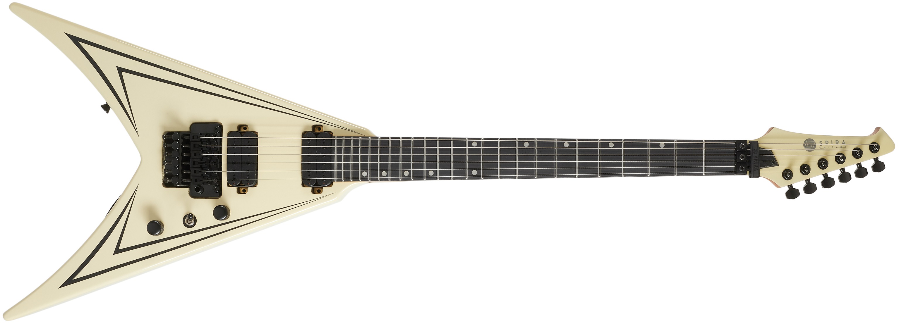 Elektrická kytara Značka Spira Guitars nabízí cenově dostupné elektrické kytary v moderním designu osazené silnými snímači určené hráčům hard a heavy stylů. Jedná se o projekt lidí z tábora Jet Guitars, tj. značky známé výrobou “budget” kytar v tradičních designech. V případě kytar Spira Guitars se počítá jenom šťavnaté high-gain zkreslení a “full chug”. Elektrická kytara V-420 AWH je klasické “véčko”, tj. vychází z tvaru modelů Flying V. Nabízí tělo zhotovené z “pečeného” topolu (roasted poplar), krk z kan