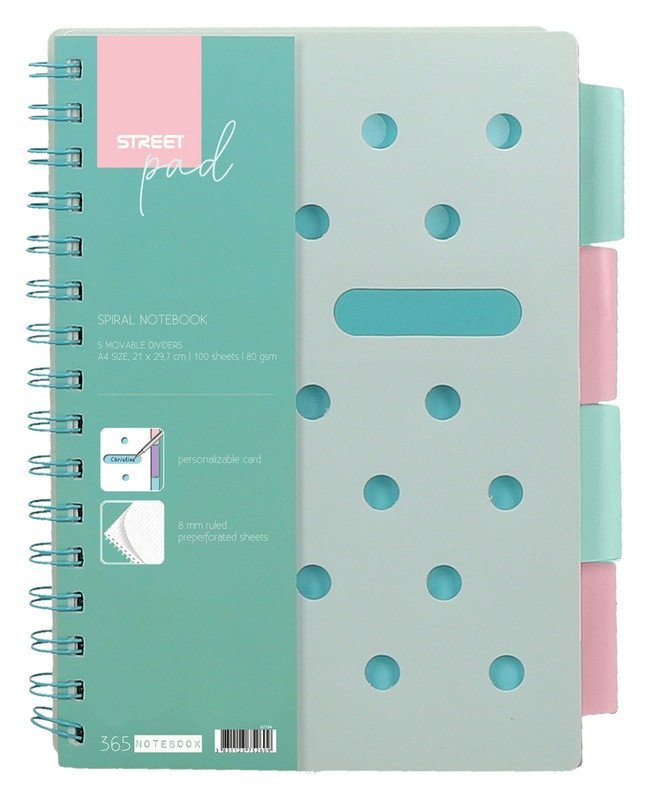 Spirálový blok A5, 100l, linkovaný - StreetPad Green (mix)