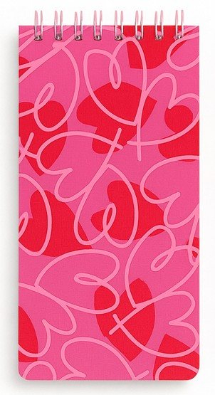Spirálový blok s motivem srdíček má tečkované stránky. Rozměry: 18 × 9 × 0,7 cm