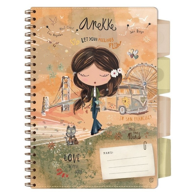 Sešit se záložkami/s plastovými rozřaďovači různých barev. • s praktickou kapsičkou pro dívky s motivem známého děvčátka Anekke z dílny španělské designérky, velikost A5, linkovaný, 100 listů, 80g/m2 • nezbytná součást školních potřeb • hodí se i do kanceláře
