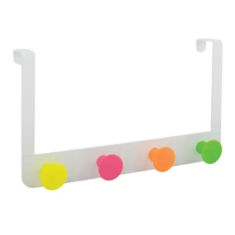 Spirella RONDA Neon závěsný věšák na dveře se 4 barevnými háčky matně bílý / kov / 44 mm (7610583206701)