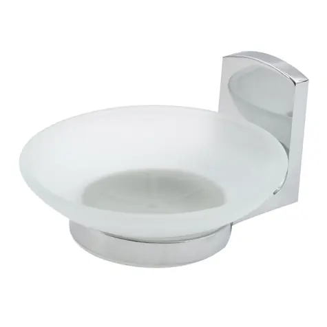 Spirella TAKU nástěnný držák s mýdlenkou matná bílá / sklo / lesklá chromovaná ocel (7610583210722)