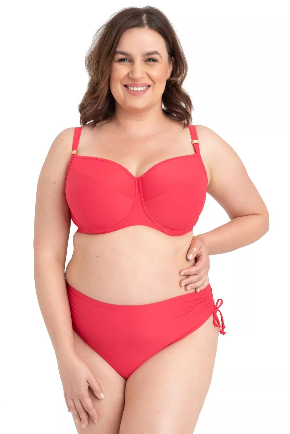 Spodní díl plavek Kaia B400 Samanta - červená barva - z kvalitního španělského mikrovlákna - vysoký pas - nastavitelné boky se zlatými detaily - certifikát Oeko-Tex STANDARD 100®Materiálové složení: 80% polyamid + 20% elastan