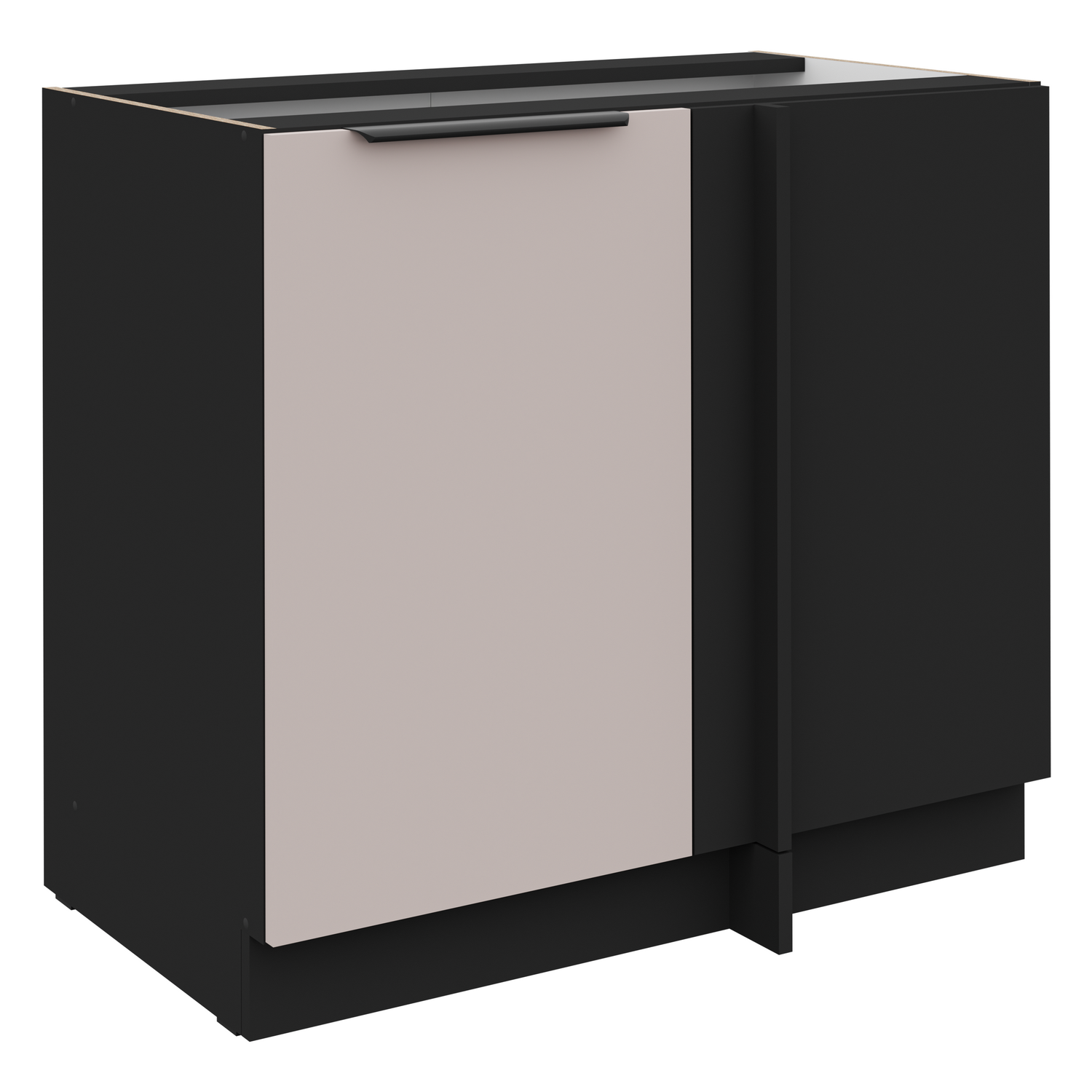 Spodní rohová skříňka Arona 105 ND 1F BB Vlastnosti: Materiál Laminovaná dřevotřísková deska o síle 16 mm Zakončené hrany ABS hrana o síle 1 mm Úchyt Matný kovový černý úchyt Sokl Součástí balení Vnitřní barva Vnitřek skříně je bílý Vnitřní uspořádání Jedna police Panty / Pojezdy Panty s tlumeným zavíráním Strana otevření Dvířka lze umístit vpravo nebo vlevo - volba při montáži Nutné odsazení Prostor na zdi, který je třeba ponechat pro skříňku s pracovní deskou, je 105 cm • Barevná kombinace Černá korpus Kašmír dvířka • Rozměry:Šířka bez pracovní desky:90 cmŠířka s pracovní deskou:105 cmVýška bez pracovní desky:82 cmHloubka bez pracovní desky:52 cmPočet balení:2 krabice • Odkazy na příslušenství ke kuchyňským linkámKompletní nabídka skříněk ke kuchyňské lince AronaPracovní deskyPříslušenství ke kuchyním •
