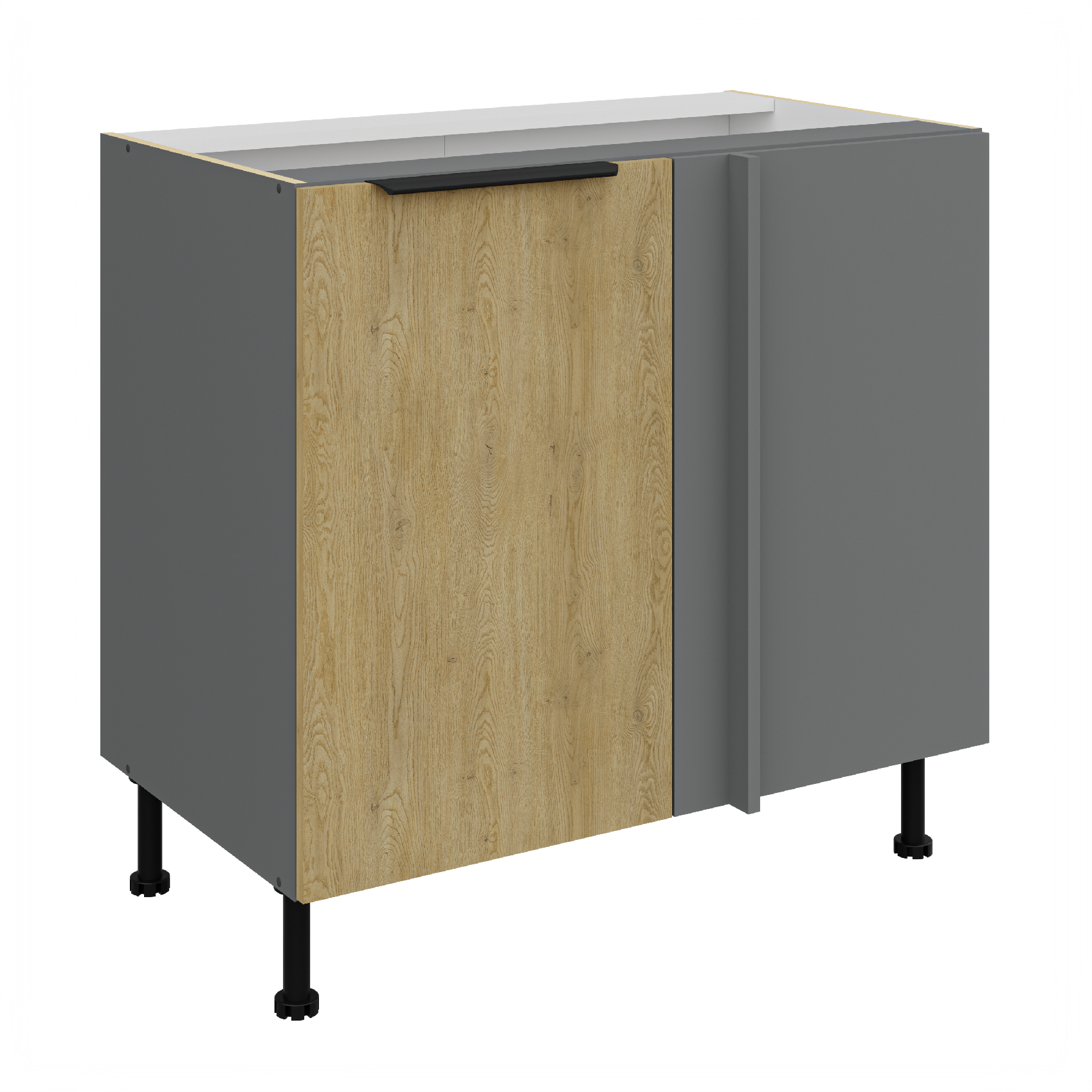 Spodní rohová skříňka Cremona ANT 105 ND 1F BB Vlastnosti: Materiál Laminovaná dřevotřísková deska o síle 16 mm Zakončené hrany ABS hrana o síle 1 mm Úchyt Matný kovový černý úchyt Sokl Sokl NENÍ součástí balení - lze doobjednat Nastavitelné nožičky Skříňka stojí na nastavitelných nožičkách: 13,5 - 16 cm Vnitřní barva Vnitřek skříně je bílý Panty / Pojezdy Panty s tlumeným zavíráním Strana otevření Dvířka lze umístit vpravo nebo vlevo - volba při montáži Nutné odsazení Prostor na zdi, který je třeba ponechat pro skříňku s pracovní deskou, je 105 cm • Barevná kombinace Antracit Korpus Dub Cremona Dvířka • Rozměry:Šířka bez pracovní desky:90 cmŠířka s pracovní deskou:105 cmVýška bez pracovní desky:87 cmHloubka bez pracovní desky:52 cmPočet balení:2 krabice • Sokl ke kuchyňské linceSpodní skříňky stojí na nastavitelných nožičkách, tím pádem není součástí skřínek spodní krycí sokl. Ten je možné dokoupit hned v několika rozměrech. Manipulace s ním je snadná. • Odkazy na příslušenství ke kuchyňským linkámKompletní nabídka skříněk ke kuchyňské lince Cremona ANTPracovní deskyPříslušenství ke kuchyním •