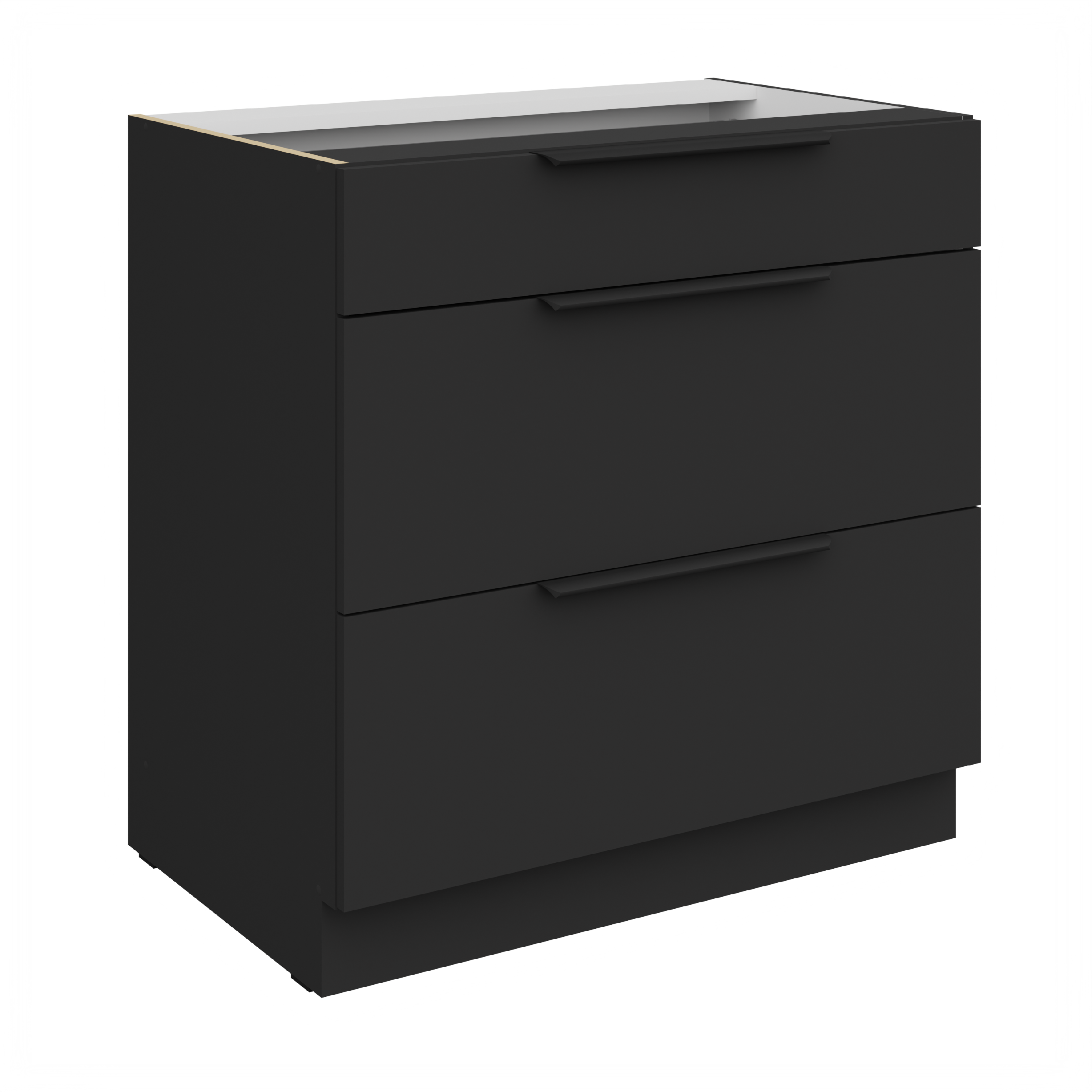 Spodní skříňka Aria 80 D 3S BB - Premium Box Vlastnosti: Materiál Laminovaná dřevotřísková deska o síle 16 mm Zakončené hrany ABS hrana o síle 1 mm Anti Finger Print Jedná se o speciální povrchovou úpravu, kdy na povrchu dvířek / čel zásuvek nezůstávají otisky prstů. Úchyt Matný kovový černý úchyt Sokl Součástí balení Vnitřní barva Vnitřek skříně je bílý Vnitřní uspořádání Tři zásuvky Panty / Pojezdy Pojezdy s tlumeným zavíráním • Barevné kombinace K dispozici je celkem 15 barevný kombinací - 3 barevné varianty korpusu a 5 barevných variant dvířek. Dub artisan korpus Bílá matná korpus Černá matná korpus BL - Black AFM dvířka / čela zásuvek SA - Aquamarine AFM dvířka / čela zásuvek TA - Sandgrau AFM dvířka / čela zásuvek GR - Graphite AFM dvířka / čela zásuvek WH - Crystal white AFM dvířka / čela zásuvek • Rozměry:Šířka:80 cmVýška bez pracovní desky:82 cmHloubka bez pracovní desky:52 cmPočet balení:2 krabice • Odkazy na příslušenství ke kuchyňským linkámKompletní nabídka skříněk ke kuchyňské lince AriaPracovní deskyPříslušenství ke kuchyním •