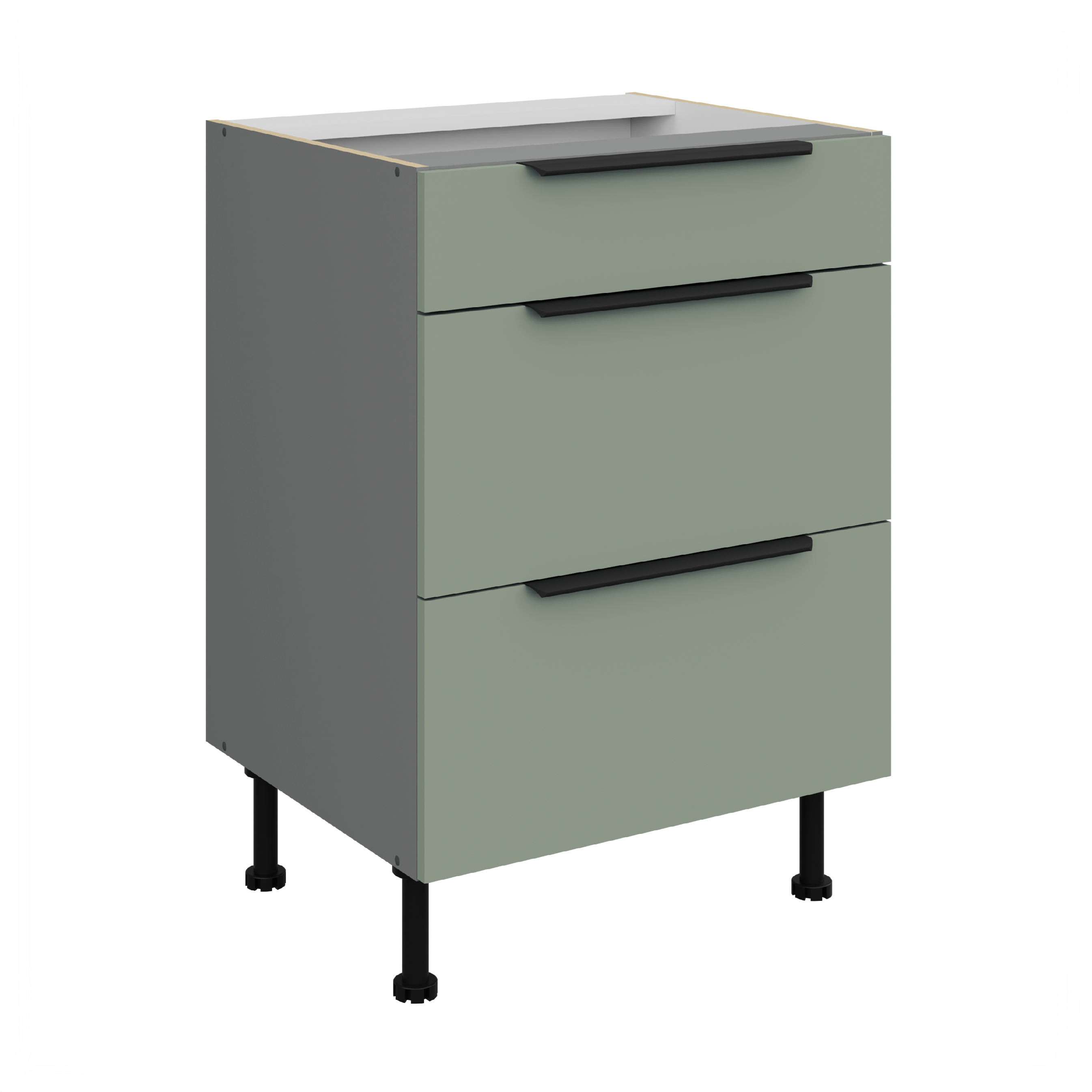 Spodní skříňka Aria ANT 60 D 3S BB - Premium Box Vlastnosti: Materiál Laminovaná dřevotřísková deska o síle 16 mm Zakončené hrany ABS hrana o síle 1 mm Anti Finger Print Jedná se o speciální povrchovou úpravu, kdy na povrchu dvířek / čel zásuvek nezůstávají otisky prstů. Úchyt Matný kovový černý úchyt Sokl Sokl NENÍ součástí balení - lze doobjednat Nastavitelné nožičky Skříňka stojí na nastavitelných nožičkách: 13,5 - 16 cm Vnitřní barva Vnitřek skříně je bílý Panty / Pojezdy Pojezdy s tlumeným zavíráním • Barevné kombinace Antracit korpus BL - Black AFM dvířka / čela zásuvek SA - Aquamarine AFM dvířka / čela zásuvek TA - Sandgrau AFM dvířka / čela zásuvek GR - Graphite AFM dvířka / čela zásuvek WH - Crystal white AFM dvířka / čela zásuvek • Rozměry:Šířka:60 cmVýška bez pracovní desky:82 cmHloubka bez pracovní desky:52 cmPočet balení:2 krabice • Sokl ke kuchyňské linceSpodní skříňky stojí na nastavitelných nožičkách, tím pádem není součástí skřínek spodní krycí sokl. Ten je možné dokoupit hned v několika rozměrech. Manipulace s ním je snadná. • Odkazy na příslušenství ke kuchyňským linkámKompletní nabídka skříněk ke kuchyňské lince Aria ANTPracovní deskyPříslušenství ke kuchyním •