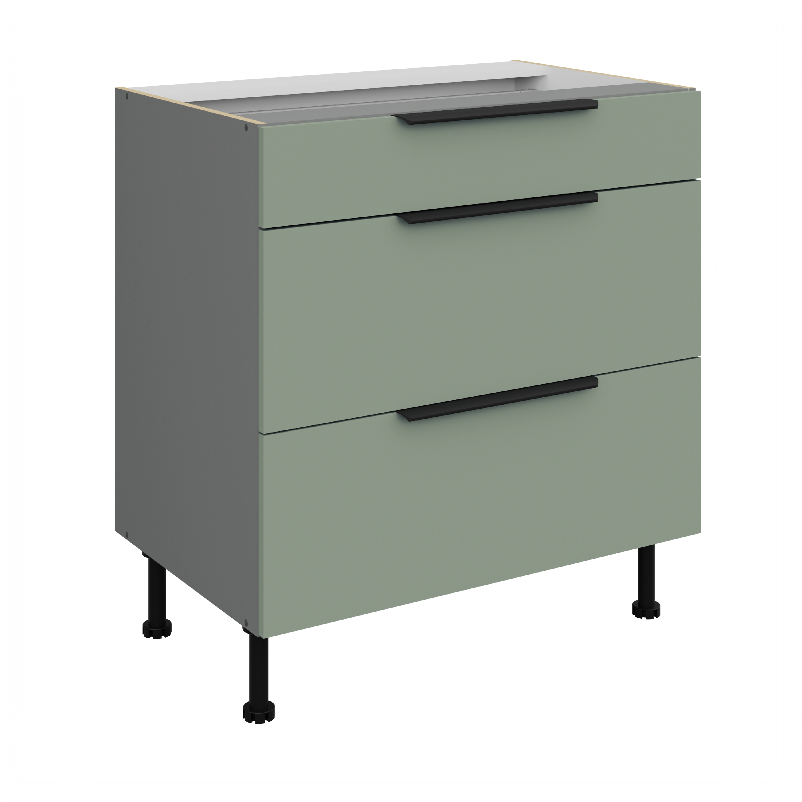 Spodní skříňka Aria ANT 80 D 3S BB - Premium Box Vlastnosti: Materiál Laminovaná dřevotřísková deska o síle 16 mm Zakončené hrany ABS hrana o síle 1 mm Anti Finger Print Jedná se o speciální povrchovou úpravu, kdy na povrchu dvířek / čel zásuvek nezůstávají otisky prstů. Úchyt Matný kovový černý úchyt Sokl Sokl NENÍ součástí balení - lze doobjednat Nastavitelné nožičky Skříňka stojí na nastavitelných nožičkách: 13,5 - 16 cm Vnitřní barva Vnitřek skříně je bílý Panty / Pojezdy Pojezdy s tlumeným zavíráním • Barevné kombinace Antracit korpus BL - Black AFM dvířka / čela zásuvek SA - Aquamarine AFM dvířka / čela zásuvek TA - Sandgrau AFM dvířka / čela zásuvek GR - Graphite AFM dvířka / čela zásuvek WH - Crystal white AFM dvířka / čela zásuvek • Rozměry:Šířka:80 cmVýška bez pracovní desky:82 cmHloubka bez pracovní desky:52 cmPočet balení:2 krabice • Sokl ke kuchyňské linceSpodní skříňky stojí na nastavitelných nožičkách, tím pádem není součástí skřínek spodní krycí sokl. Ten je možné dokoupit hned v několika rozměrech. Manipulace s ním je snadná. • Odkazy na příslušenství ke kuchyňským linkámKompletní nabídka skříněk ke kuchyňské lince Aria ANTPracovní deskyPříslušenství ke kuchyním •