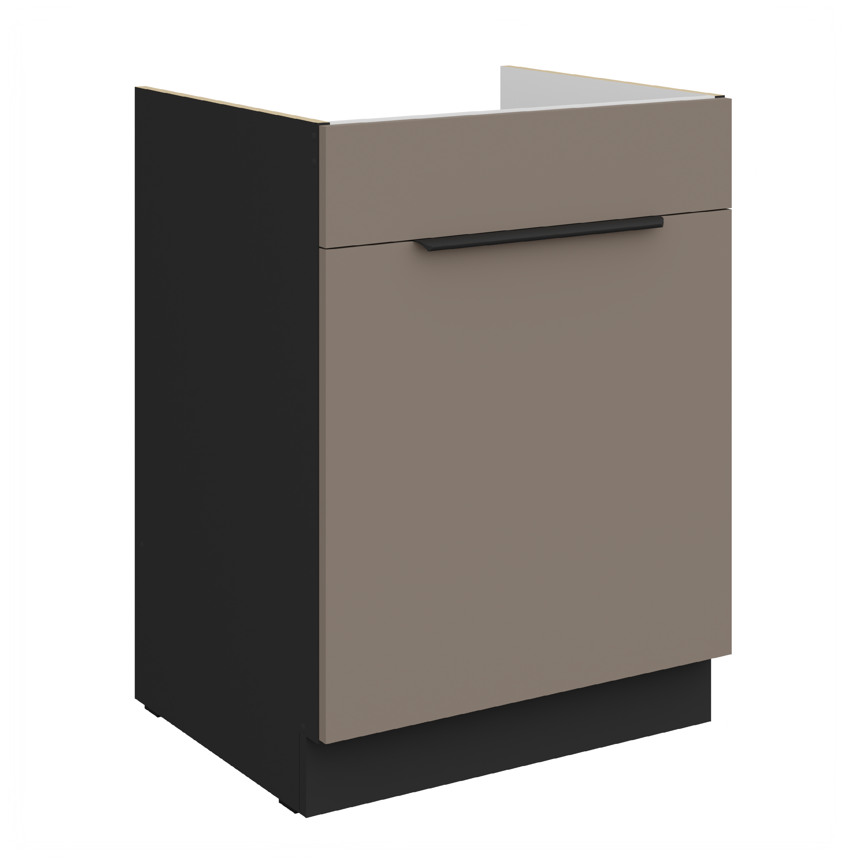 Spodní skříňka pod dřez Aria 60 ZL 1S BB - Premium Box Vlastnosti: Materiál Laminovaná dřevotřísková deska o síle 16 mm Zakončené hrany ABS hrana o síle 1 mm Anti Finger Print Jedná se o speciální povrchovou úpravu, kdy na povrchu dvířek / čel zásuvek nezůstávají otisky prstů. Úchyt Matný kovový černý úchyt Sokl Součástí balení Vnitřní barva Vnitřek skříně je bílý Panty / Pojezdy Pojezdy s tlumeným zavíráním Určení Skříňka je určená pro dřez • Barevné kombinace K dispozici je celkem 15 barevný kombinací - 3 barevné varianty korpusu a 5 barevných variant dvířek. Dub artisan korpus Bílá matná korpus Černá matná korpus BL - Black AFM dvířka / čela zásuvek SA - Aquamarine AFM dvířka / čela zásuvek TA - Sandgrau AFM dvířka / čela zásuvek GR - Graphite AFM dvířka / čela zásuvek WH - Crystal white AFM dvířka / čela zásuvek • Rozměry:Šířka:60 cmVýška bez pracovní desky:82 cmHloubka bez pracovní desky:52 cmPočet balení:2 krabice • Odkazy na příslušenství ke kuchyňským linkámKompletní nabídka skříněk ke kuchyňské lince AriaPracovní deskyPříslušenství ke kuchyním •