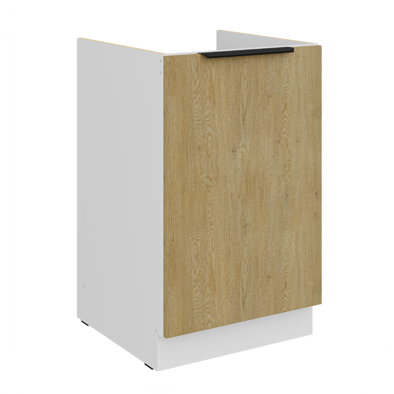 Spodní skříňka pod dřez Cremona 50 ZL 1F BB Vlastnosti: Materiál Laminovaná dřevotřísková deska o síle 16 mm Zakončené hrany ABS hrana o síle 1 mm Úchyt Matný kovový černý úchyt Sokl Součástí balení Vnitřní barva Vnitřek skříně je bílý Panty / Pojezdy Panty s tlumeným zavíráním Určení Skříňka je určená pro dřez • Barevné kombinace Černá a Dub Cremona Korpus a dvířka Bílá a Dub Cremona Korpus a dvířka • Rozměry:Šířka:50 cmVýška bez pracovní desky:82 cmHloubka bez pracovní desky:52 cmPočet balení:2 krabice • Odkazy na příslušenství ke kuchyňským linkámKompletní nabídka skříněk ke kuchyňské lince CremonaPracovní deskyPříslušenství ke kuchyním •