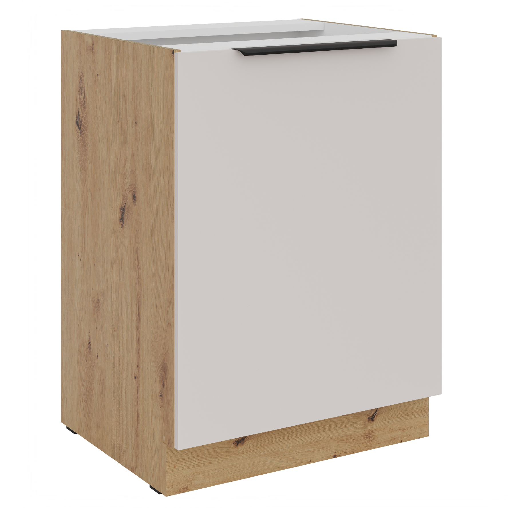 Spodní skříňka Solea 60 D 1F BB Vlastnosti: Materiál Laminovaná dřevotřísková deska o síle 16 mm Zakončené hrany ABS hrana o síle 1 mm Úchyt Matný kovový černý úchyt Sokl Součástí balení Vnitřní barva Vnitřek skříně je bílý Panty / Pojezdy Panty s tlumeným zavíráním • Barevná kombinace Dub artisan korpus Kašmír dvířka • Rozměry:Šířka:60 cmVýška bez pracovní desky:82 cmHloubka bez pracovní desky:52 cmPočet balení:2 krabice • Odkazy na příslušenství ke kuchyňským linkámKompletní nabídka skříněk ke kuchyňské lince SoleaPracovní deskyPříslušenství ke kuchyním •