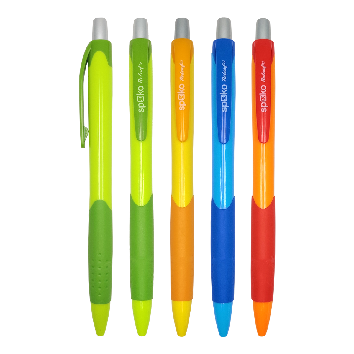 Kuličkové pero se stiskací mechanikou v barevném mixu. Příjemný pogumovaný úchop pro komfortní držení a psaní. Dvoubarevné provedení pera, stiskací mechanika se stříbrnou koncovkou. Tištěné logo na klipu. Vyrobeno ze 63 % recyklovaného plastu.šířka stopy: 0,5 mmmodrá náplňmateriál: 63 % recyklovaný plastnáhradní náplň typ X20mix barev: žlutá, oranžová, zelená, modrábalení: 12 ks/krabička