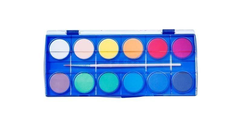 Školní sada vodových barev vysoké kvality s výbornou pigmentací. Balení obsahuje 12 intenzivních barev a štětec. Barvy jsou ředitelné, omyvatelné vodou, netoxické a vhodné pro děti od 3 let.