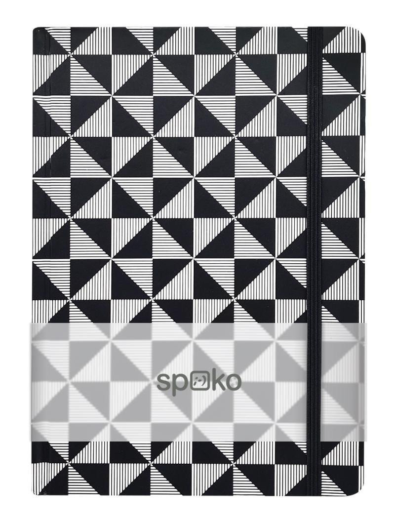 Kolekce praktických zápisníků s širokou škálou motivů je ideální na zapisování denních poznámek, myšlenek nebo kreativních nápadů. Fixační gumička pomáhá držet zápisník uzavřený a chrání obsah uvnitř. Plochá textilní záložka usnadňuje orientaci mezi poznámkami. Praktický zápisník s geometrickým motivem v kontrastních barvách černé a bílé.•obálka: karton•formát: A5, 75 g/m•linkovaný•96 stránek•plochá fixační gumička•textilní záložka